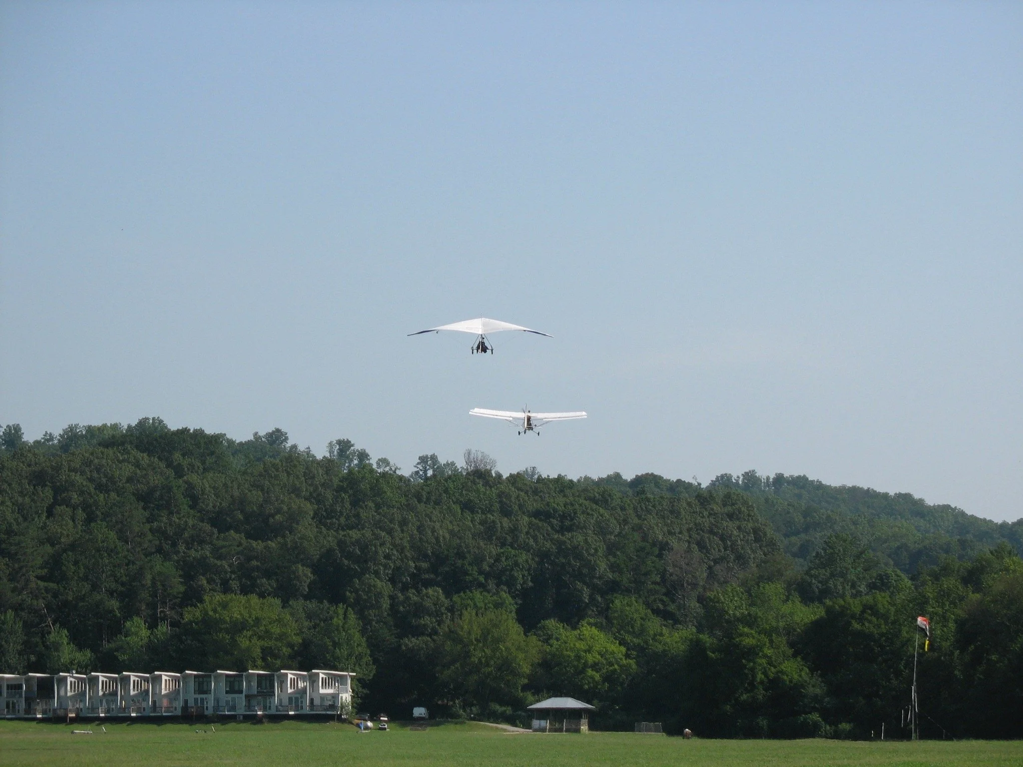 While seriously discussing the possibility of aborting the mission, we got word from the flight staff that we would NOT be jumping off the cliff, but rather starting our flight from the ground, 2000 feet below Lookout Mountain Flight Park. Whew!